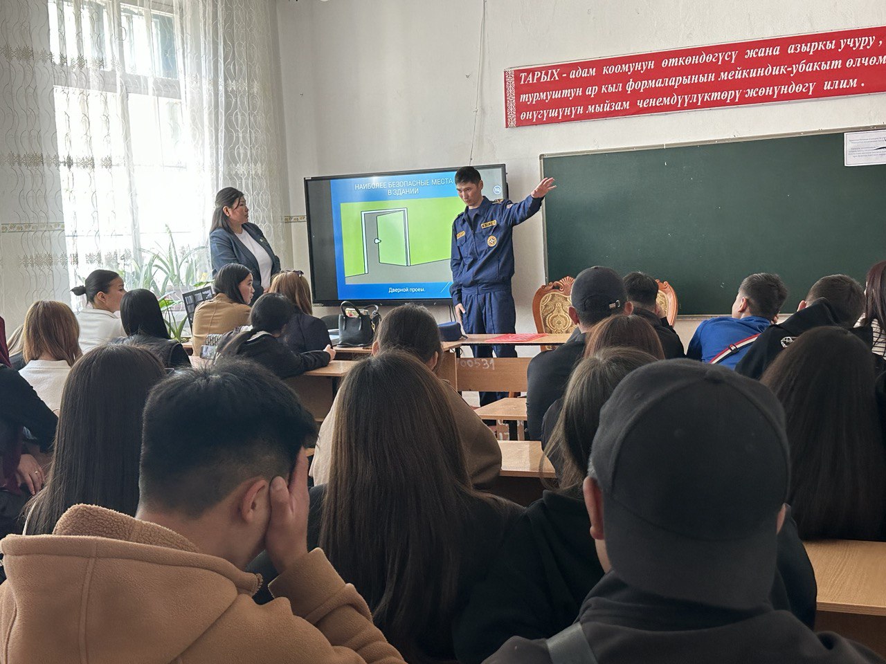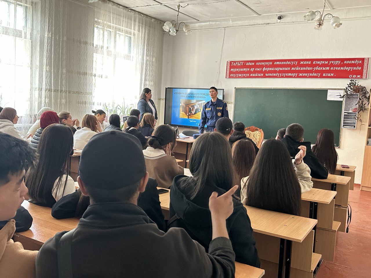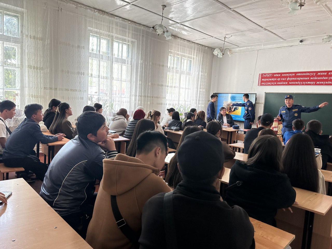 Б.Осмонов атындагы Жалал-Абад мамлекеттик университетинин Майлуу-Суу колледжинин студенттерине Майлуу-Суу шаардык өзгөчө кырдалдар бөлүмүнүн өрт өчүрүү жана алдын алуу бөлүмчөсүнүн башчысы капитан Абыдманапов Бекбол жана орун басары Жумашев Тынчтык менен жолугушу болуп өттүү.