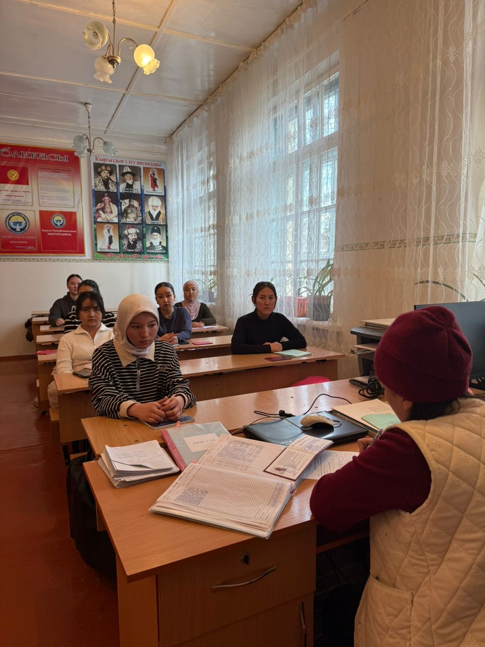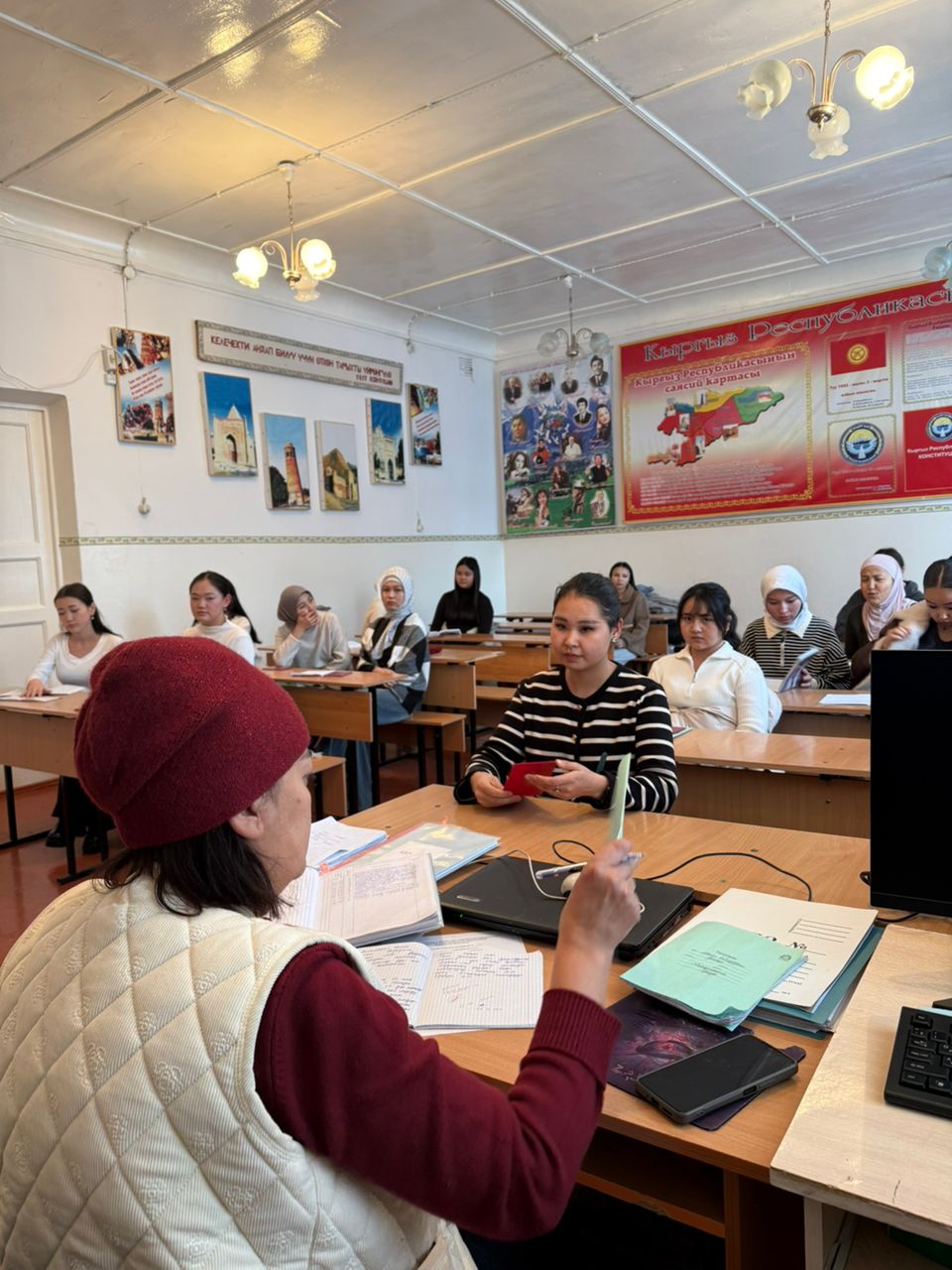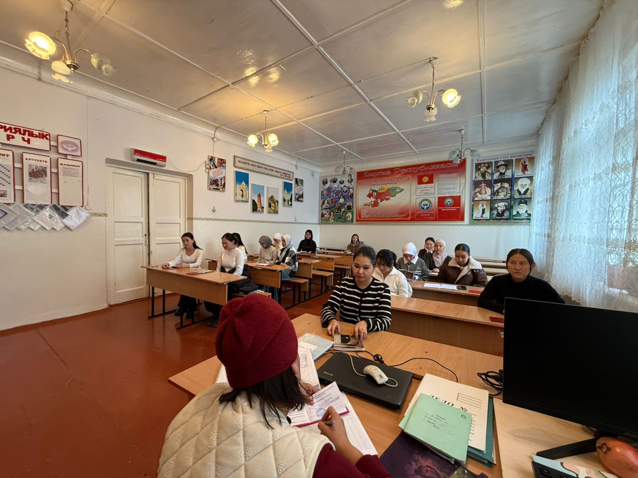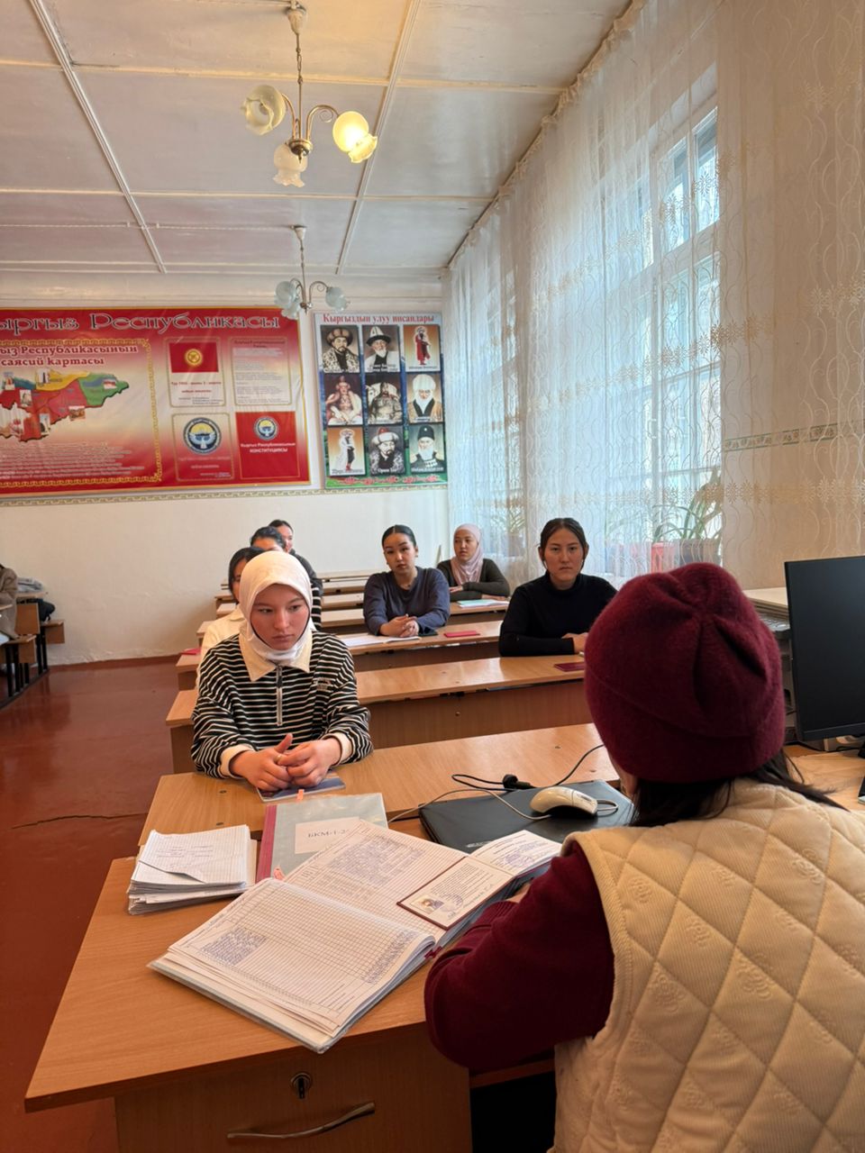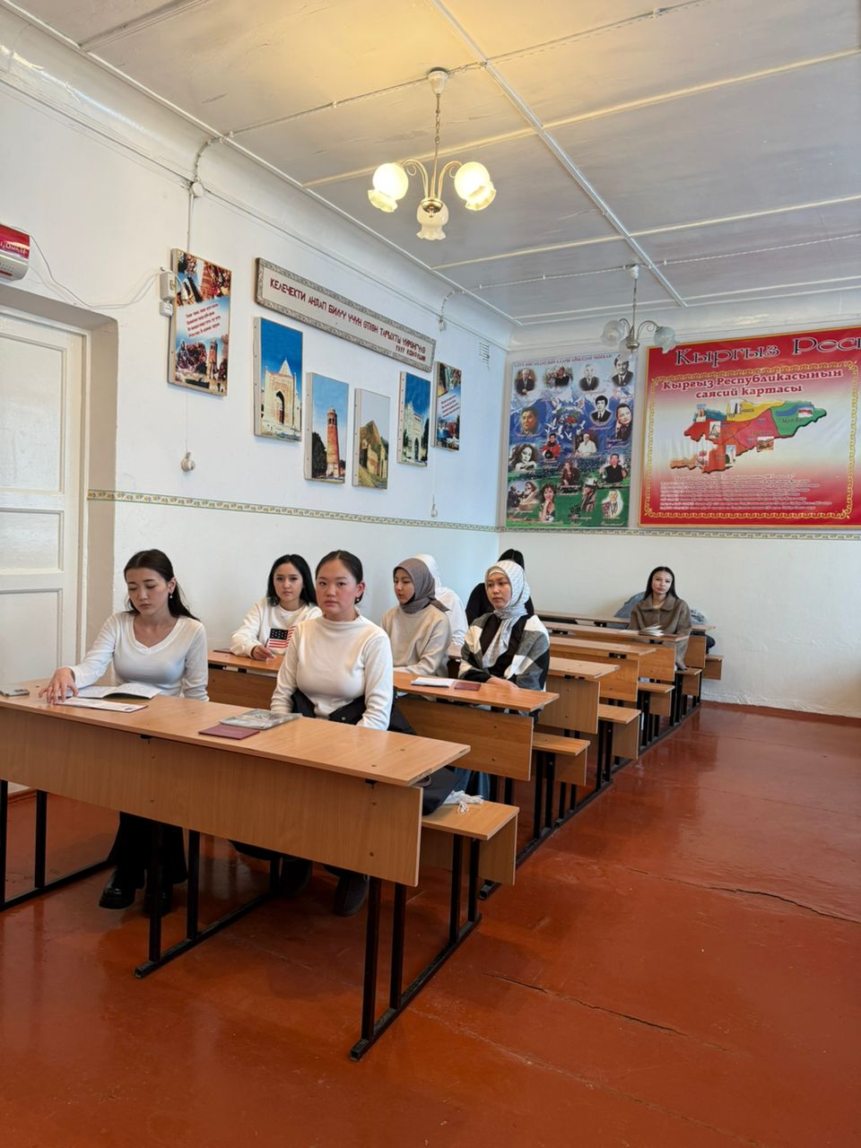 “Б.Осмонов атындагы Жалал-Абад мамлекеттик университети” илимий- билим берүү өндүрүштүк комплексинин Майлуу-Суу колледжи” мекемеси. “Башталгыч класстардын мугалими” 2-курстун БКМ-1-24 тайпасынын студенттери «Манас таануу» сабагынан жарым жылдык жыйынтыктоочу өтүм тапшырышты. Сабакты өздөштүрүү деңгээли жогору болуп, студенттер теориялык жана практикалык жактан жакшы даярдык көрсөткөн.