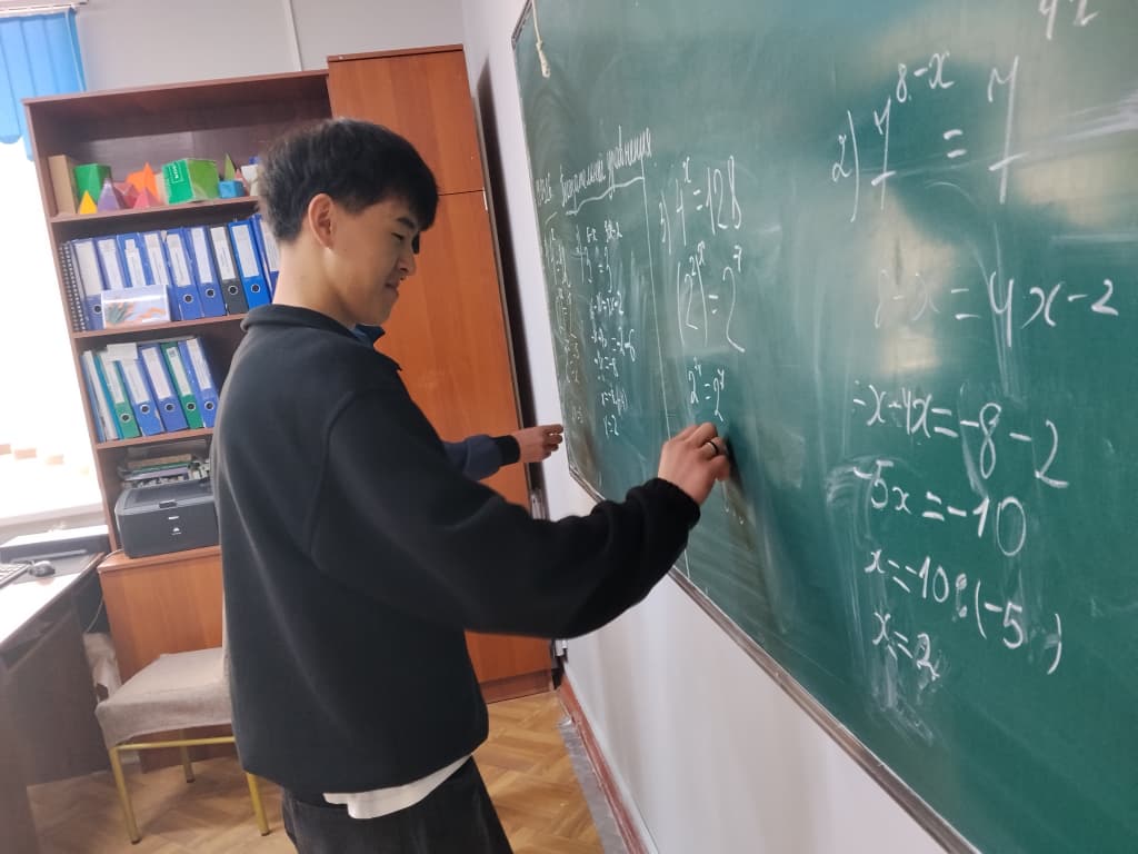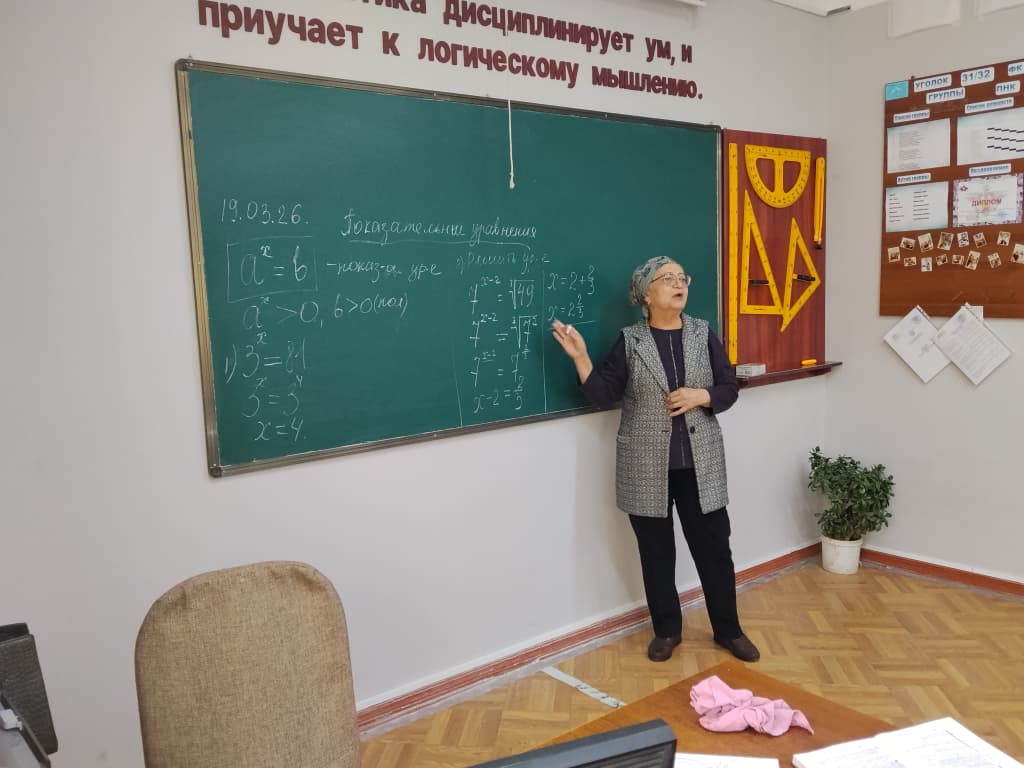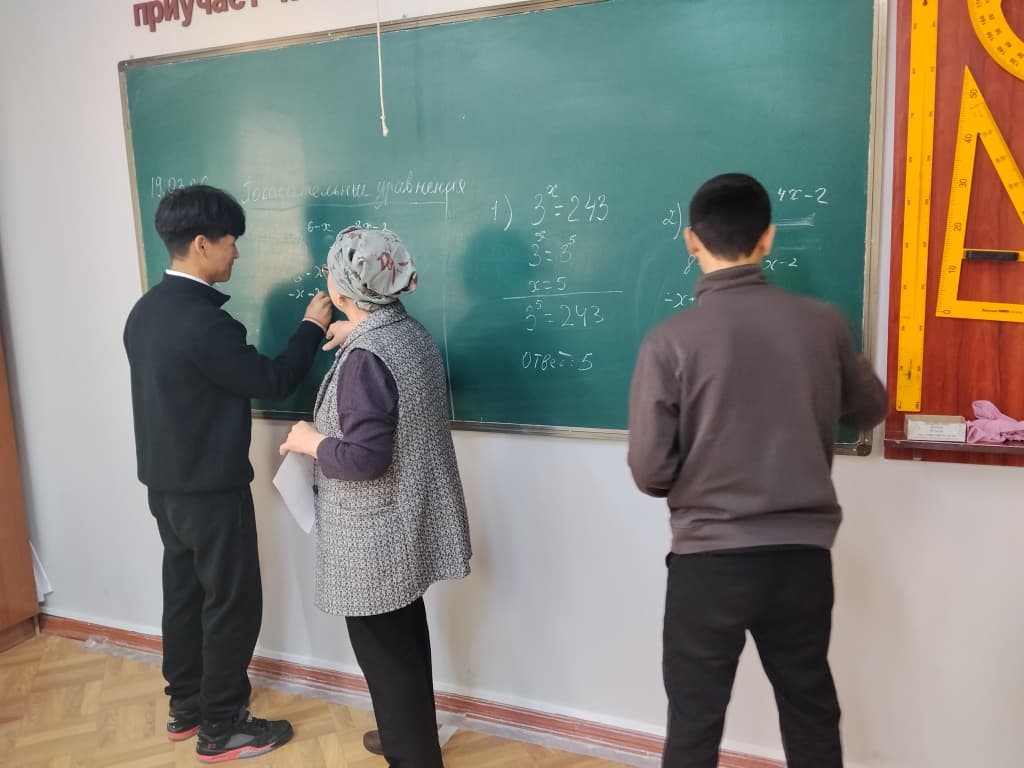 Академиялык мобилдүүлүк программасынын негизинде, Борбордук Азия колледжинде Майлуу-Суу колледжинин Э-1-25 тайпасынын студенттерине аталган колледждин окутуучусу Карагулова Мырзаим Токтогуловна “Решение показательных уровнений” темасында сабак өтүп берди.