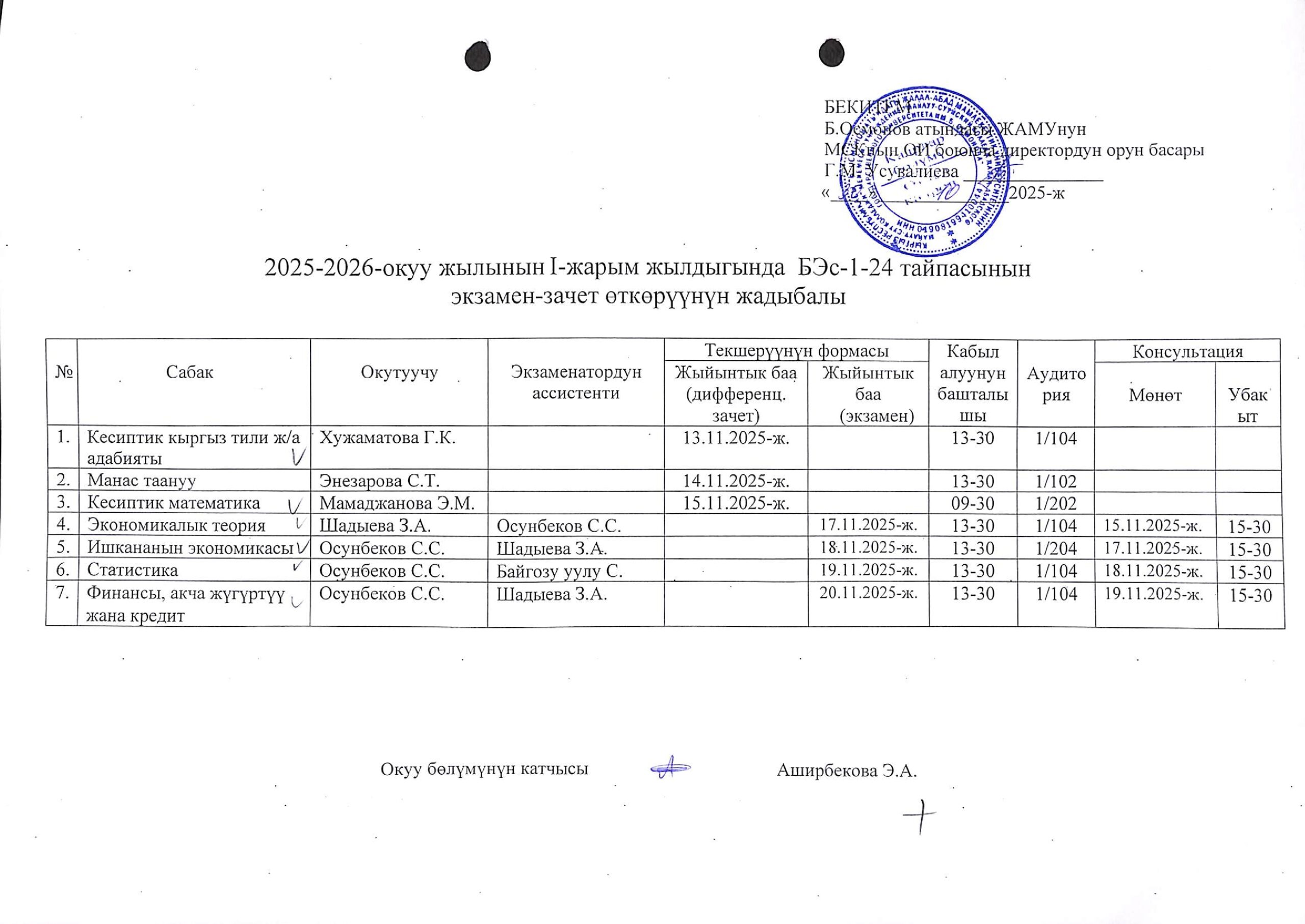 Заочный 2 курсунун 2025-2026-окуу жылынын кышкы экзамен-зачет өткөрүүнүн жадыбалы.