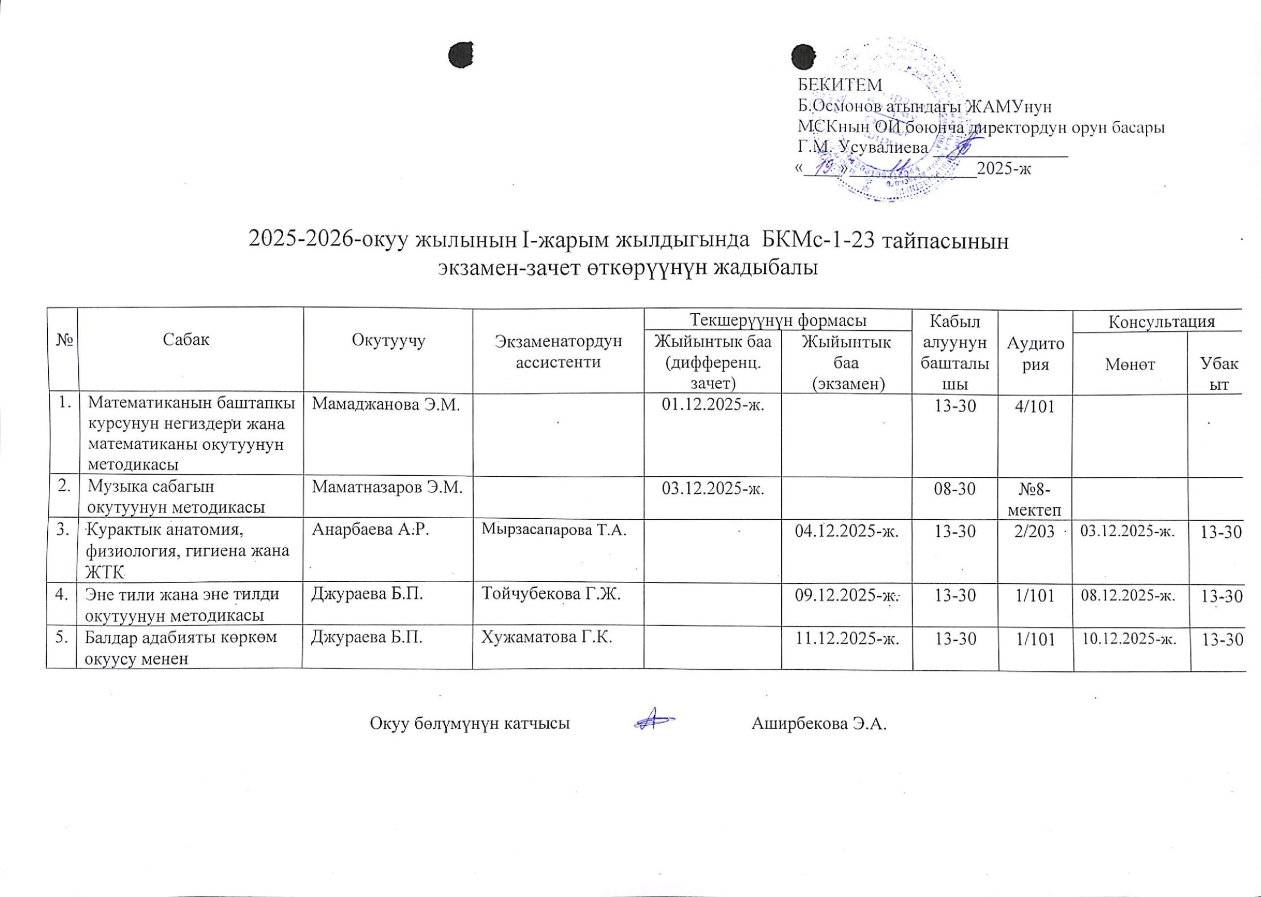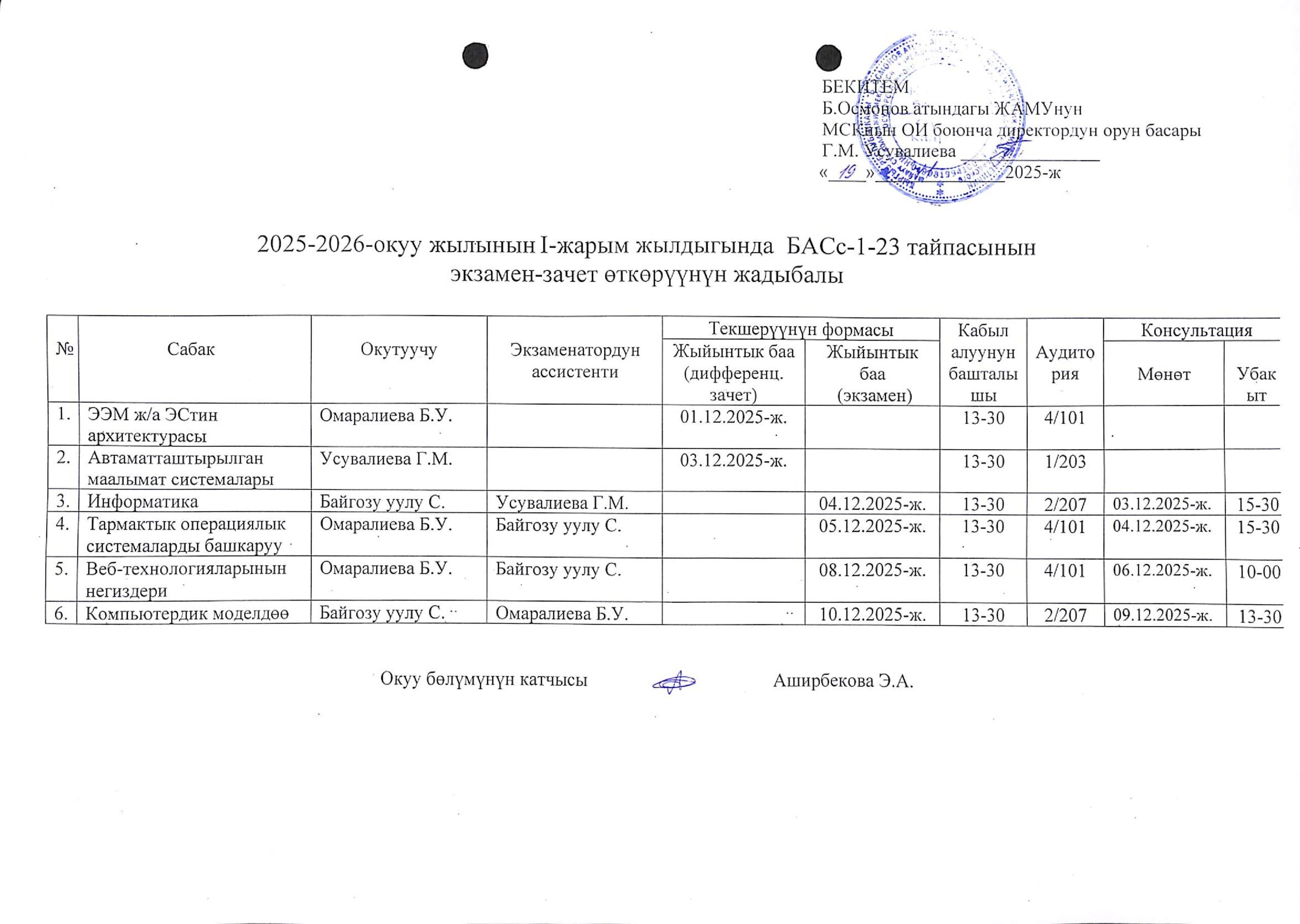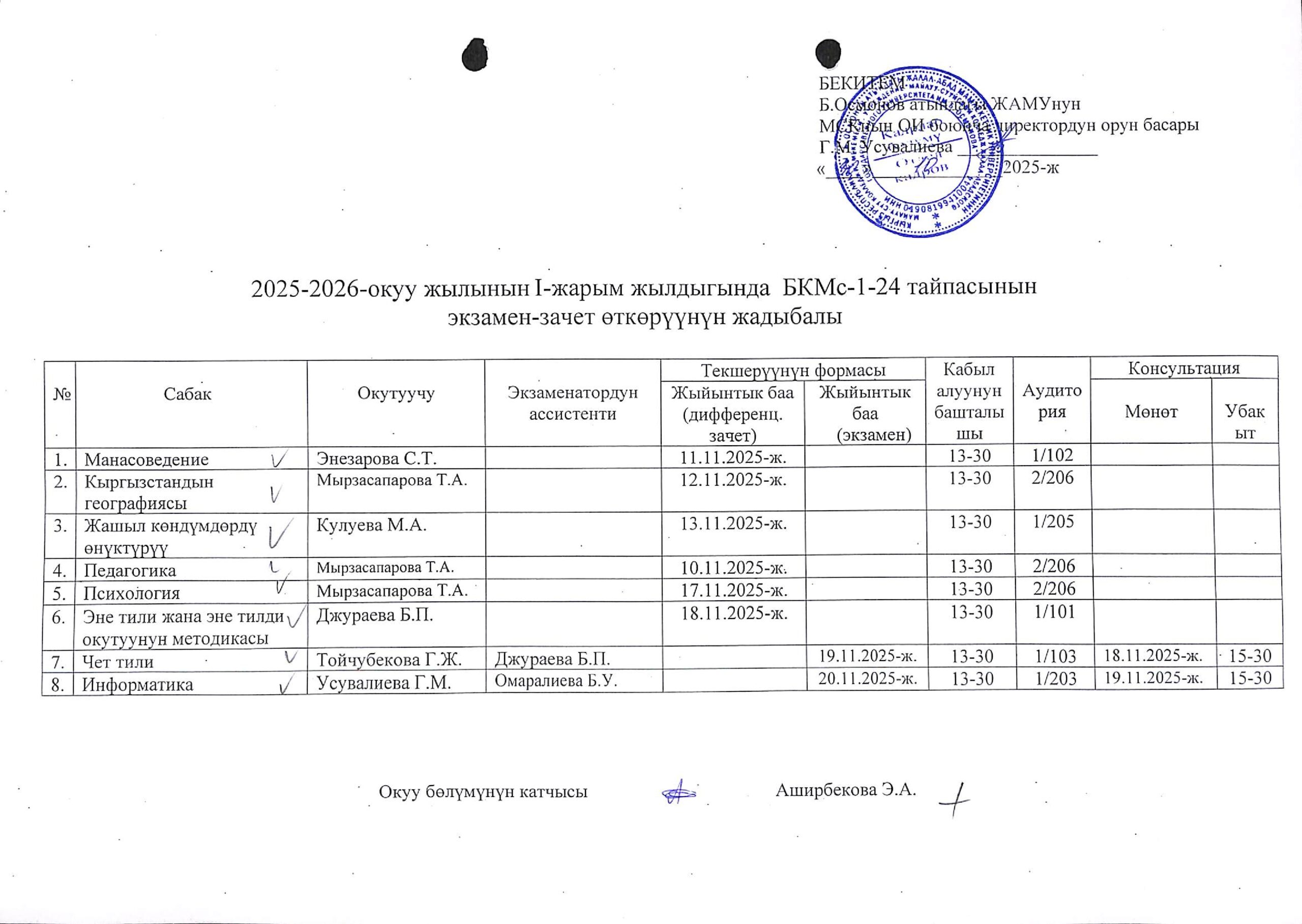 Экзамен-зачет өткөрүүнүн жадыбалы