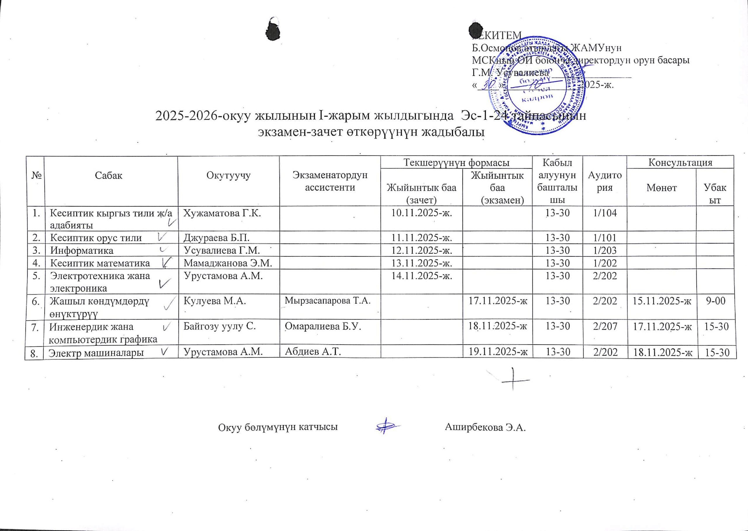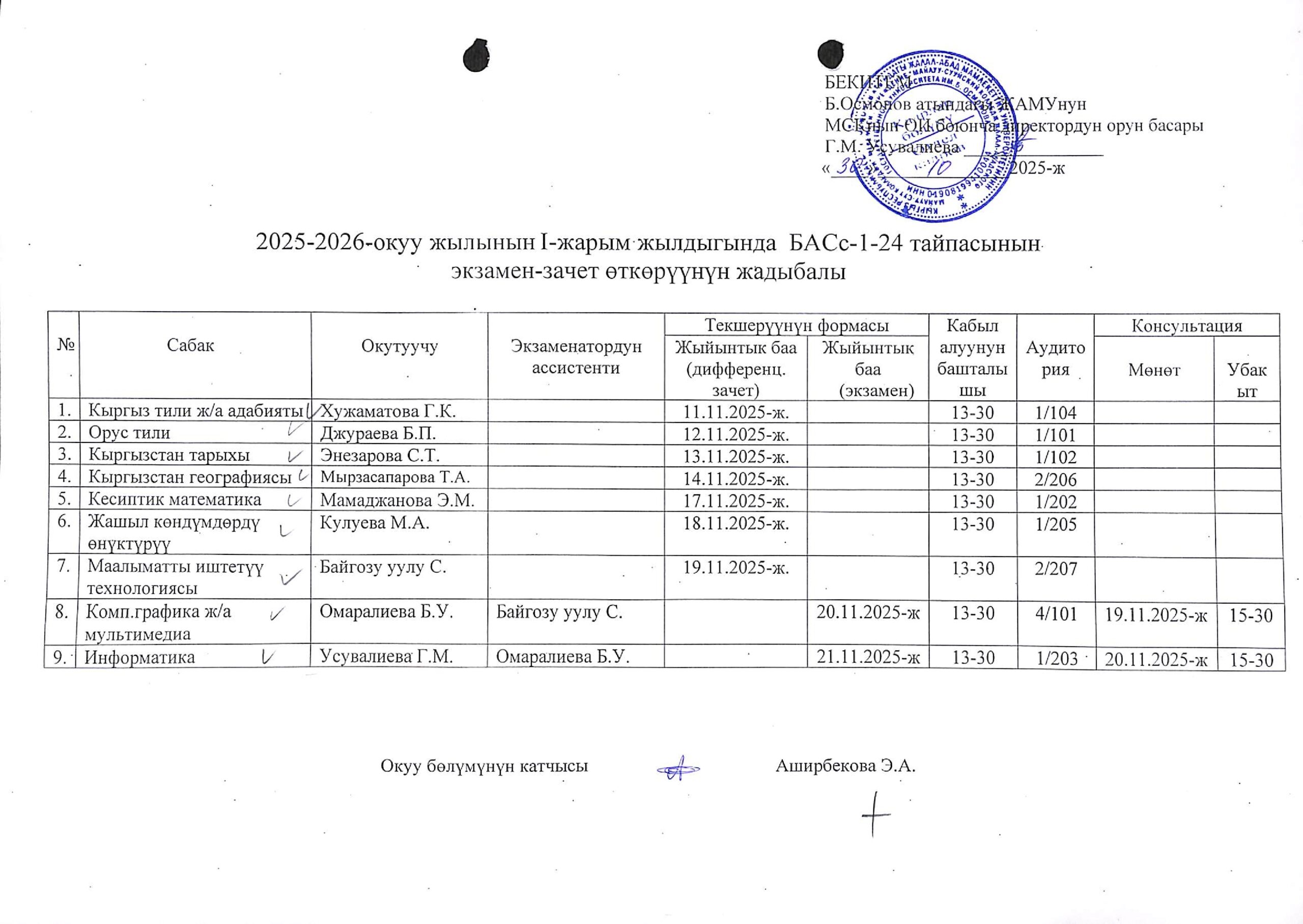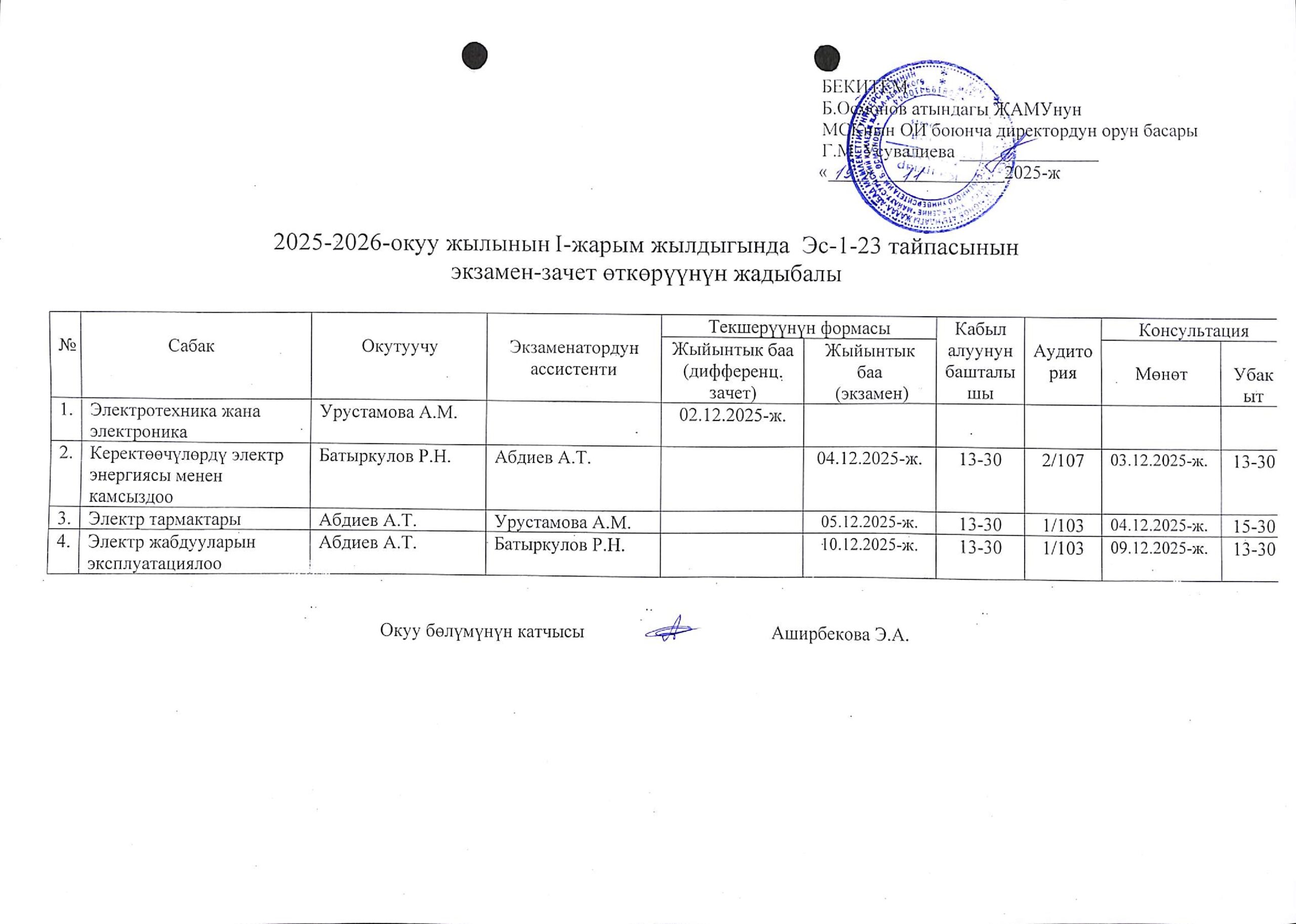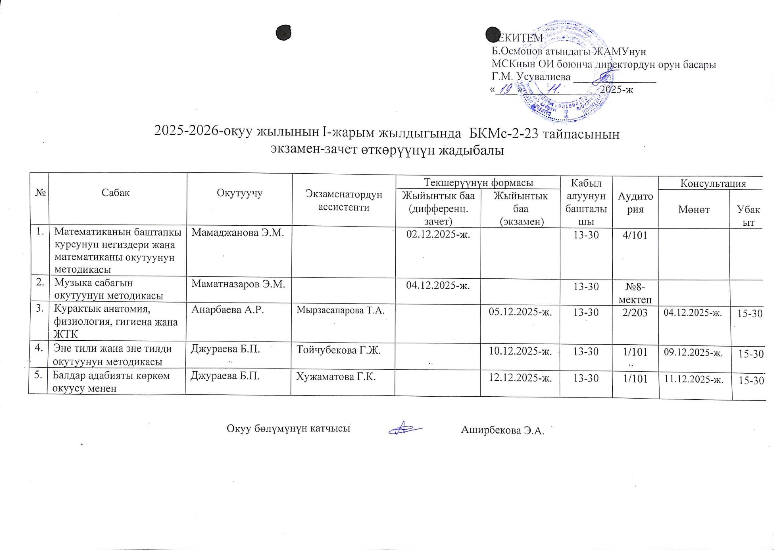 Экзамен-зачет өткөрүүнүн жадыбалы