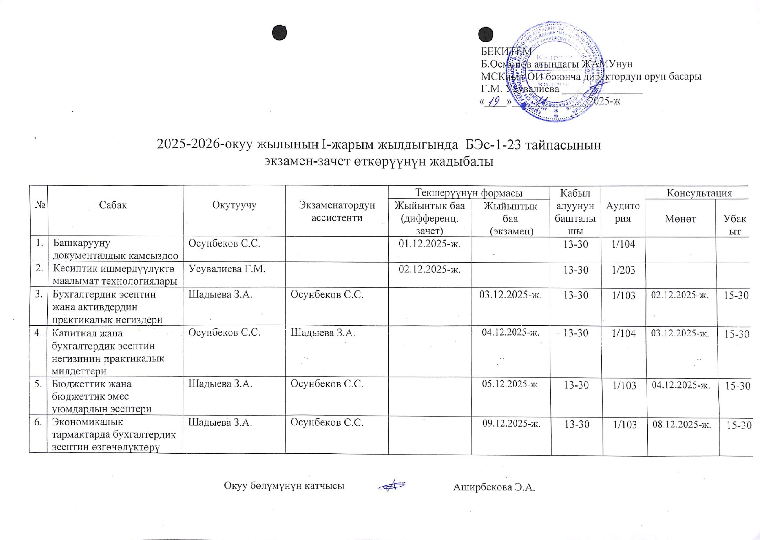 Заочный 2 курсунун 2025-2026-окуу жылынын кышкы экзамен-зачет өткөрүүнүн жадыбалы.