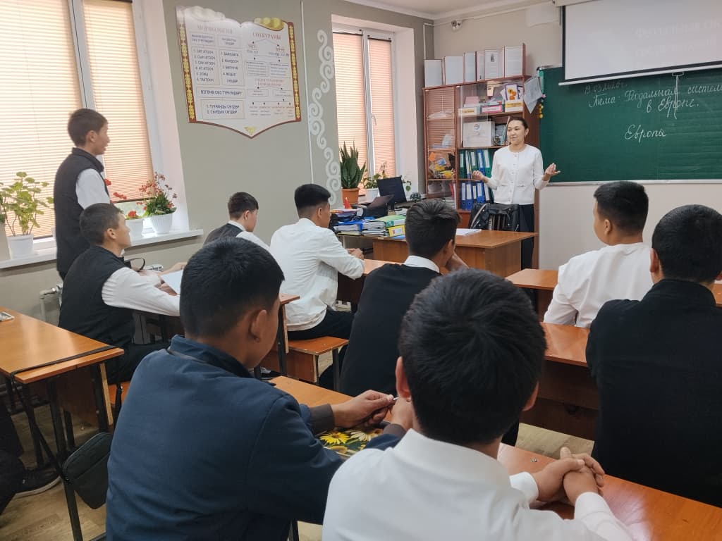 Окуу жайлар менен түзүлгөн өз ара кызматташтык келишимине ылайык, академиялык мобилдүүлүк программасынын негизинде, Борбордук Азия колледжинде Майлуу-Суу колледжинин РНГ-1-25 тайпасынын студенттерине аталган колледждин окутуучусу Тургуналиева Жасмин Бактибековна “Феодальная система в Европе” темасында сабак өтүп берди.