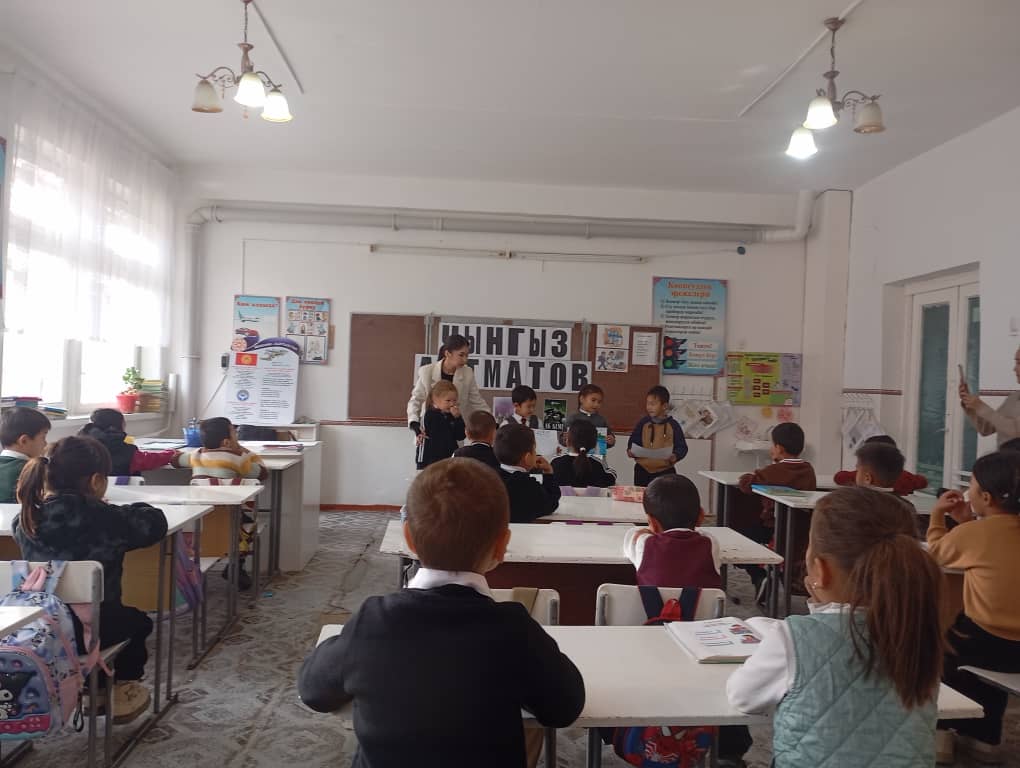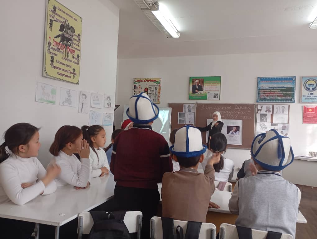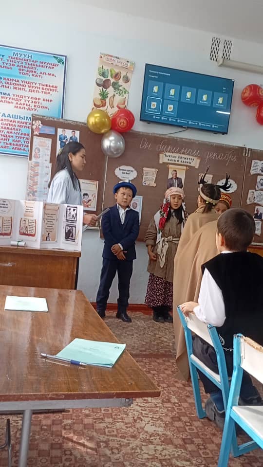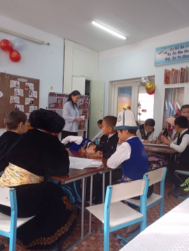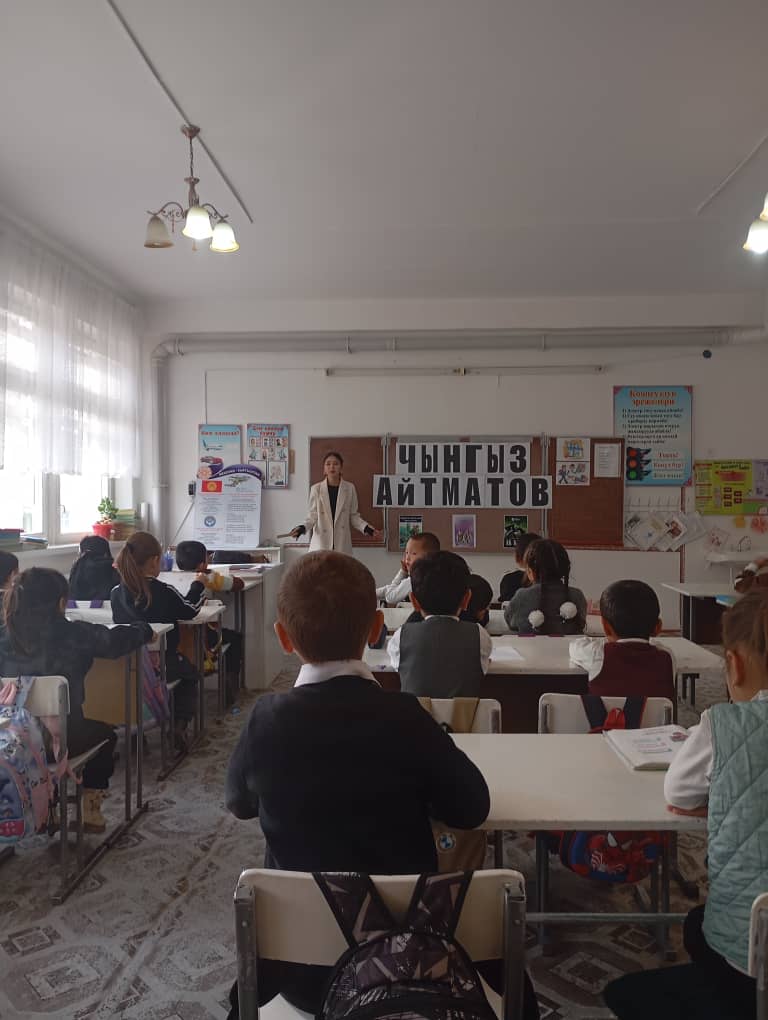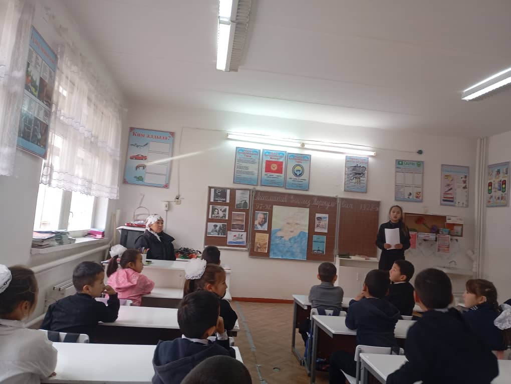 “Б.Осмонов атындагы Жалал-Абад мамлекеттик университети” илимий- билим берүү өндүрүштүк комплексинин Майлуу-Суу колледжи” мекемеси. “ Башталгыч класстардын мугалими” 3-курстун студенти Токторбаева Айша педагогикалык практика учурунда Майлуу-Суу шаарынын №8 орто мектебинде Чыңгыз Айтматовдун чыгармачылыгына арналган тарбиялык ачык саат өткөрдү.