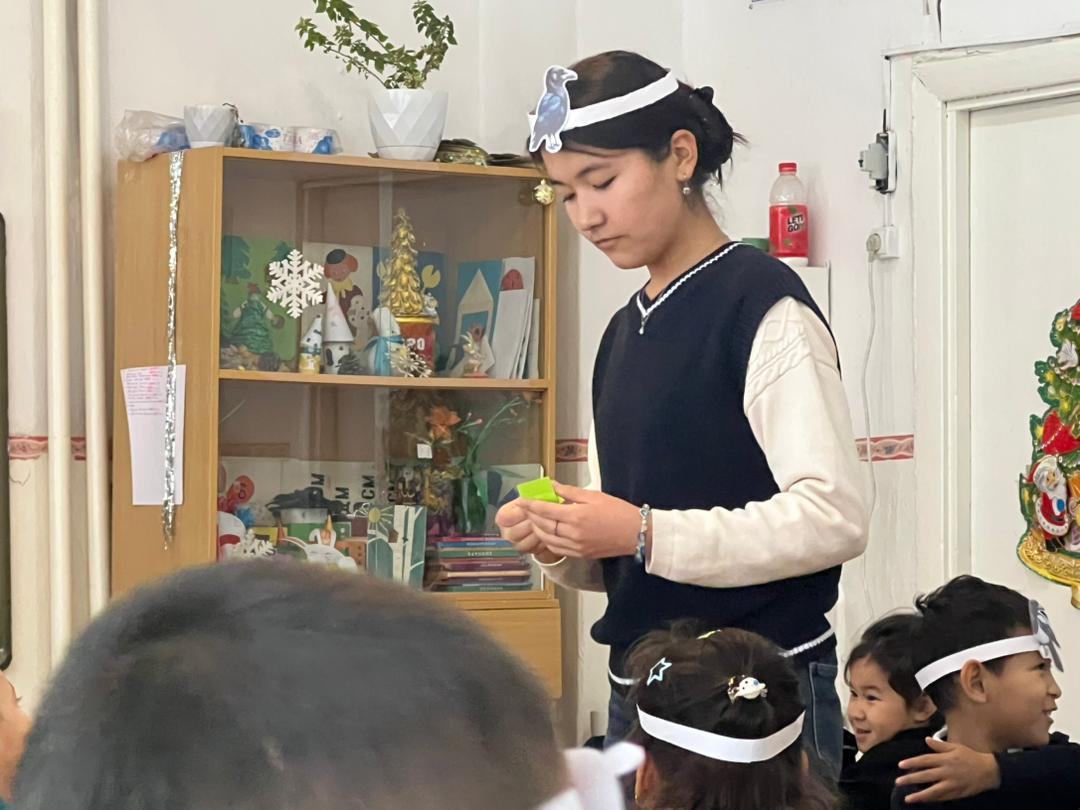3-курстун студенти Давлеталиева Бегимай «Башталгыч класстарда окутуу» адистиги боюнча билим алат. Педагогикалык практикасынын алкагында ал №2 мектептин 2-классында Е. Сладковдун «Токой босогосундагы күз» аттуу жомогу боюнча ачык сабак өттү.