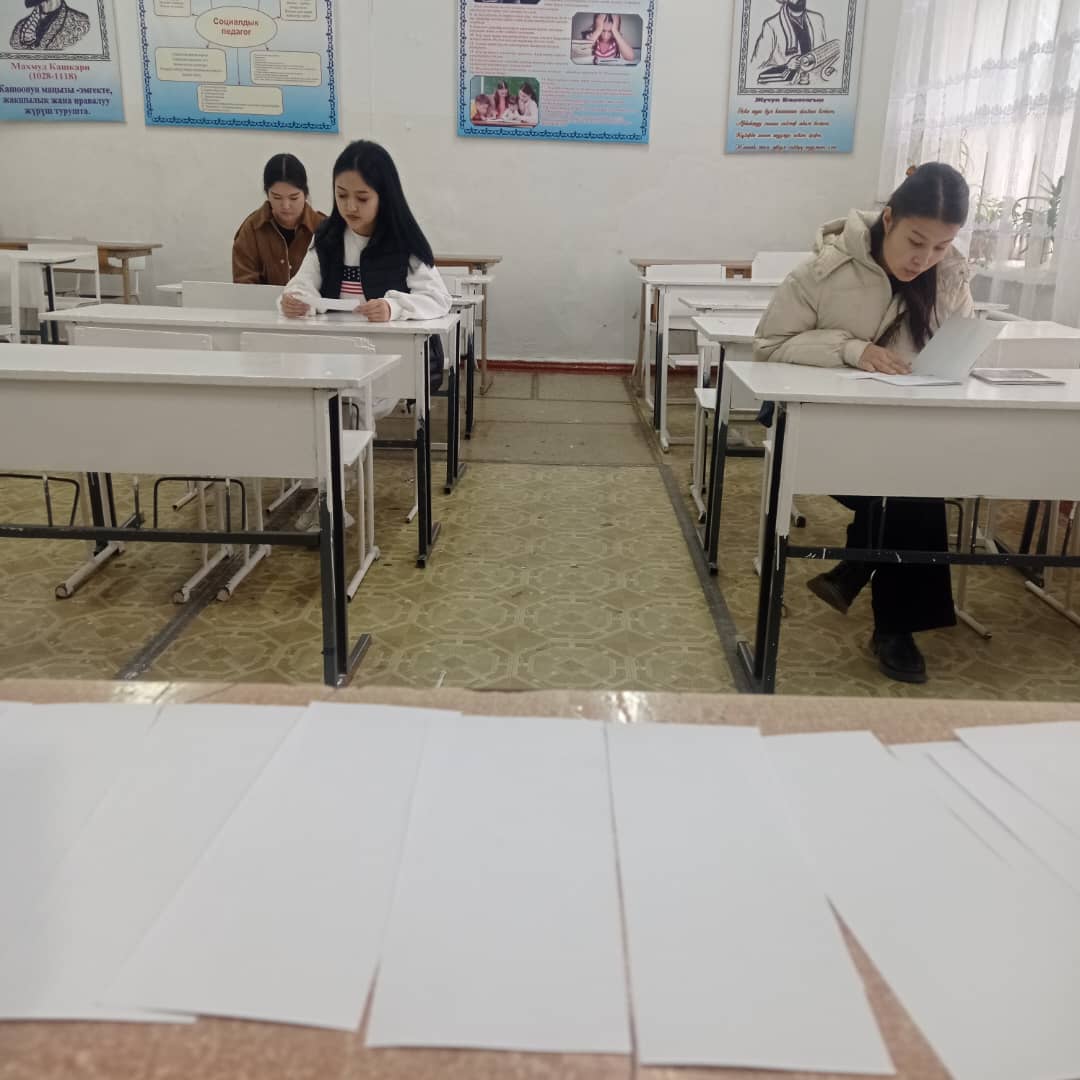 «Б.Осмонов атындагы Жалал-Абад мамлекеттик университети» илимий-билим берүү өндүрүштүк комплексинин Майлуу-Суу колледжинин БКМ -1-24 тайпасында 14-январь күнү Психология предметинен экзамен тапшыруу учуру.
