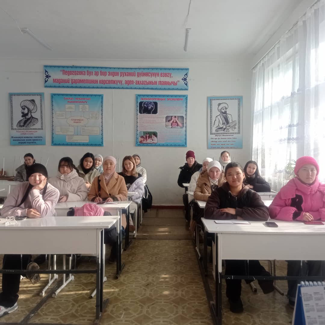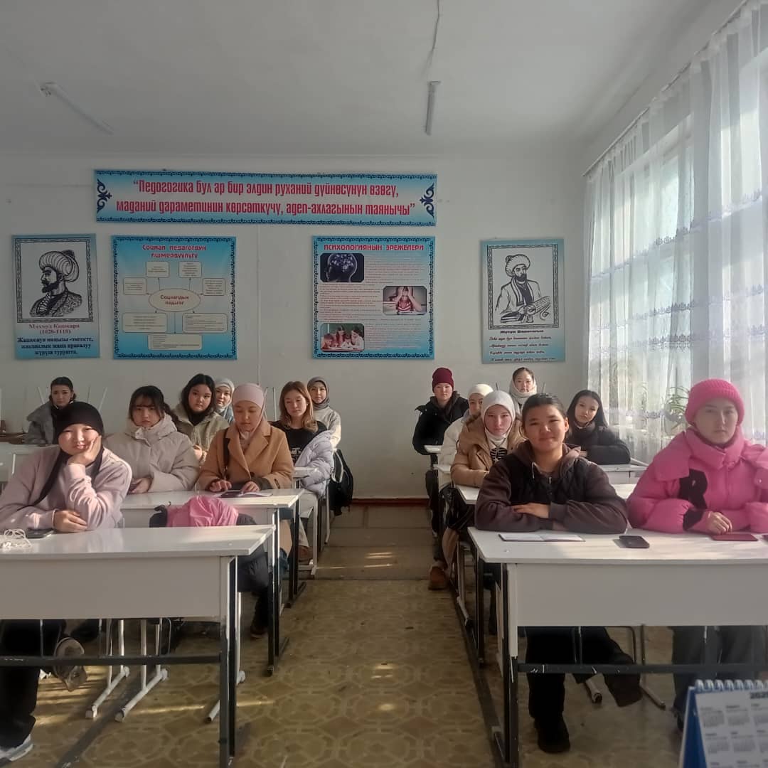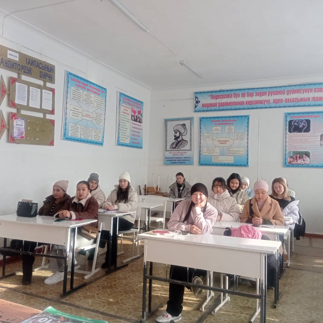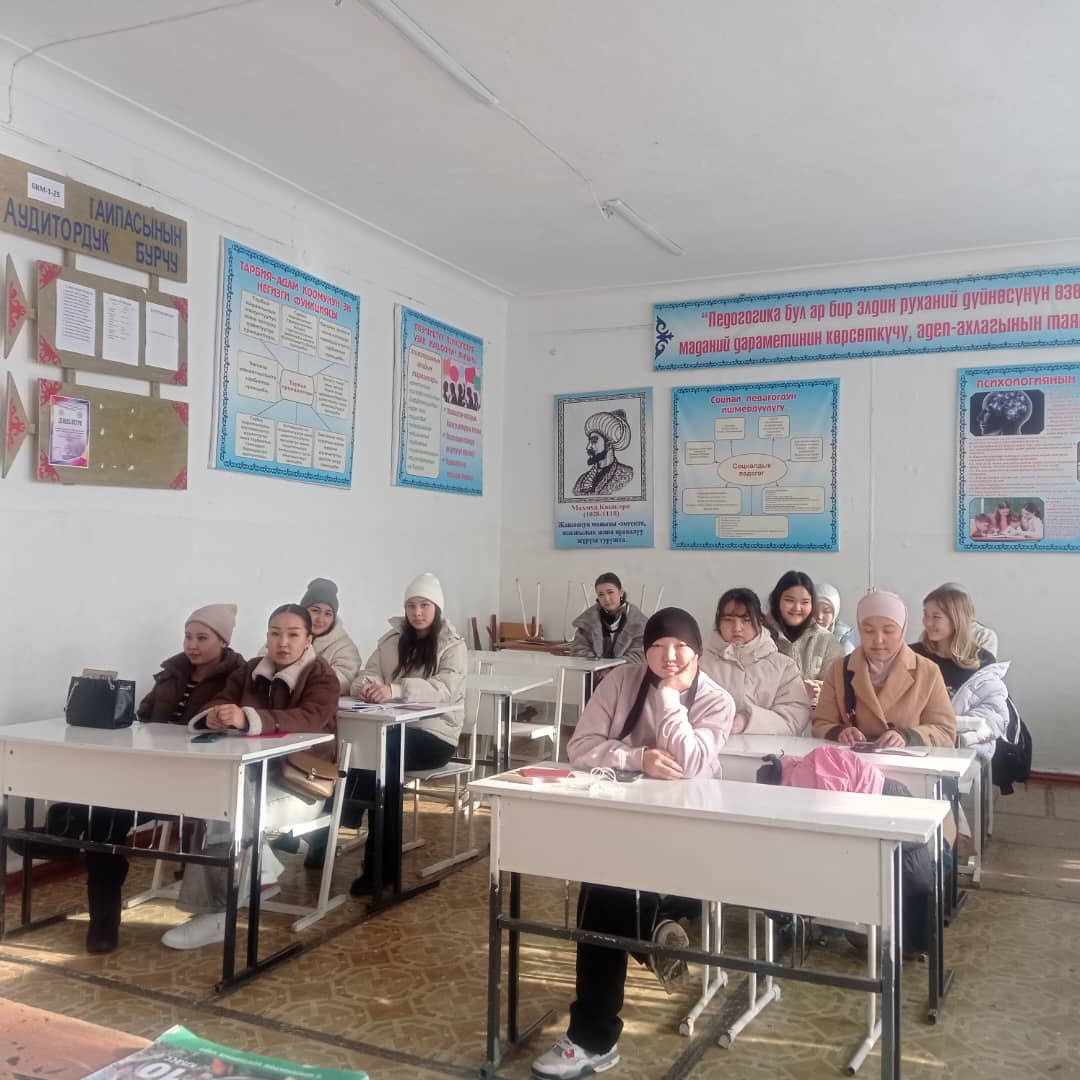 «Б.Осмонов атындагы Жалал-Абад мамлекеттик университети» илимий-билим берүү өндүрүштүк комплексинин Майлуу-Суу колледжинде 24-декабрь Кыргызстан география предметинен БКМ-1-24 тайпасынын студенттеринен зачёт тапшырып жаткан учуру.